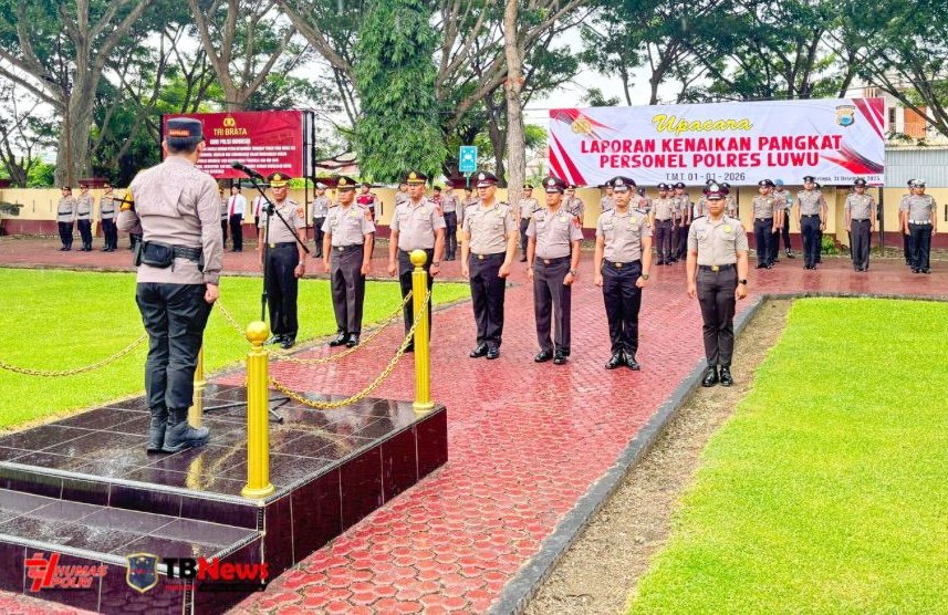 KATARAKJAT.COM, BELOPA — Kepolisian Resor (Polres) Luwu menggelar Upacara Laporan Kenaikan Pangkat personel periode TMT 1 Januari 2026 yang dipimpin langsung oleh Kapolres Luwu AKBP Adnan Pandibu, S.H., S.I.K., bertempat di lapangan apel Mapolres Luwu, Rabu lalu (31/12/2025).