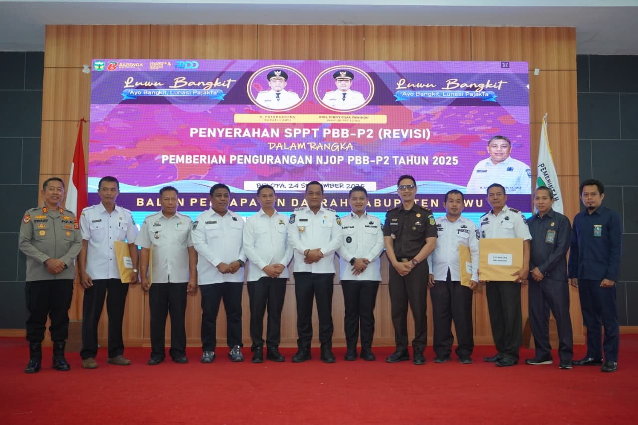 KATARAKJAT.CO.ID BELOPA — Pemkab Luwu meluncurkan SPPT PBB-P2 revisi hasil pengurangan NJOP Tahun 2025, bertepatan dengan pelaksanaan High Level Meeting Tim Percepatan dan Perluasan Digitalisasi Daerah (TP2DD) di Belopa, Rabu (24/9/2025).