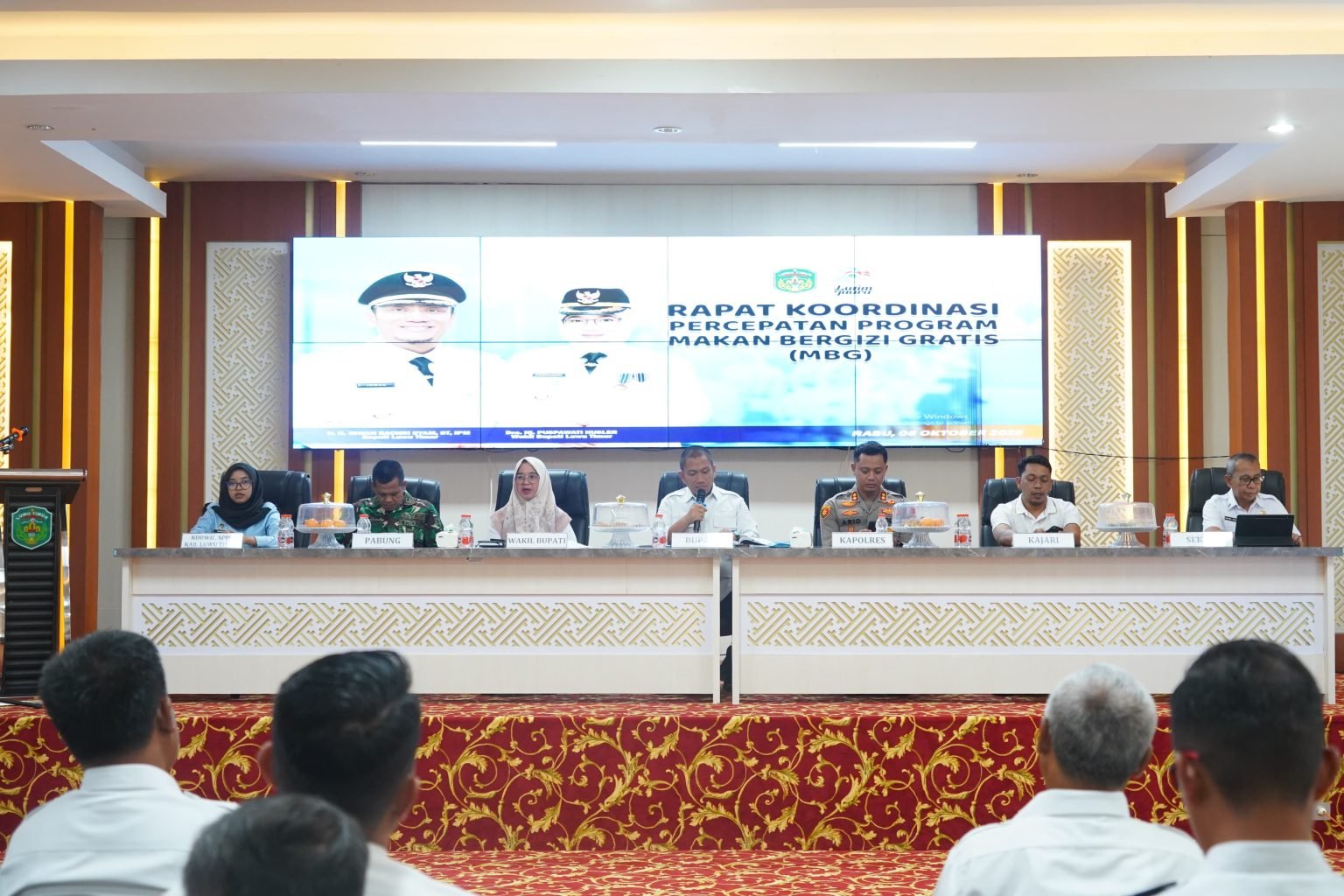 KATARAKJAT.COM, LUWU TIMUR — Dalam rangka percepatan Program Makan Bergizi Gratis (MBG) di Kabupaten Luwu Timur maka digelar Rapat Koordinasi (Rakor) yang dipimpin Bupati Luwu Timur, Irwan Bachri Syam didampingi Wakil Bupati, Hj. Puspawati Husler di Aula Sasana Praja, Kantor Bupati, Rabu 8 Oktober 2025.