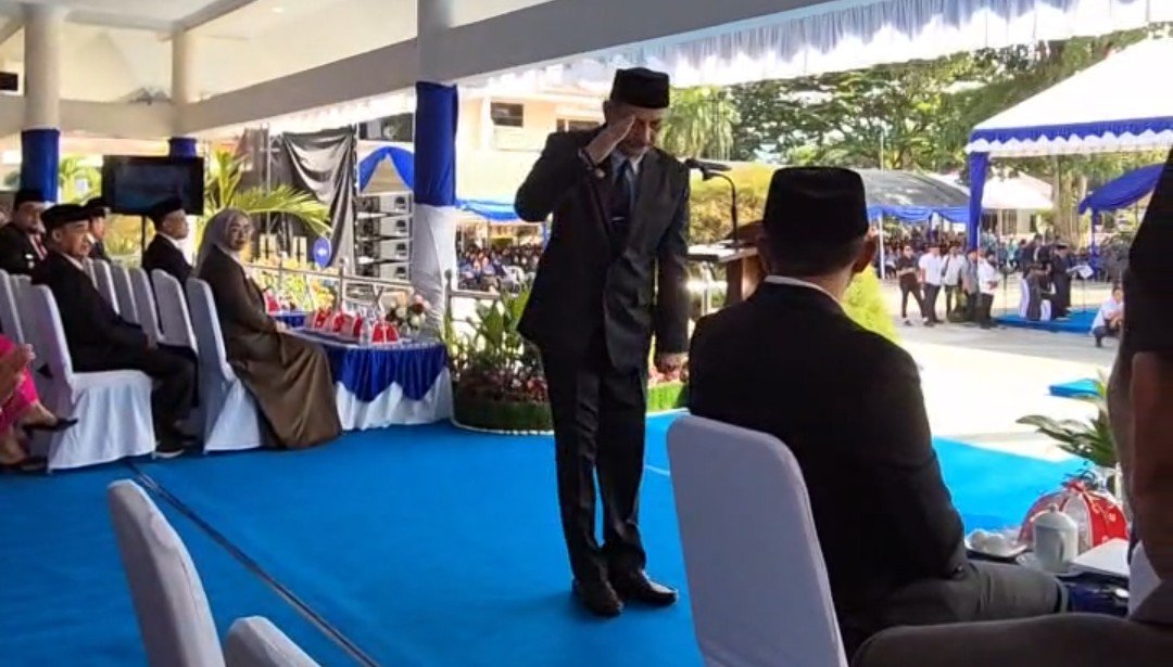 Gubernur Sulawesi Tengah Anwar Hafid saat melantik dan mengambil sumpah pejabat tinggi pratama Pemprov Sulteng di Lapangan Pogombo, Kantor Gubernur SuLteng, Rabu 31 Desember 2025 kemarin.