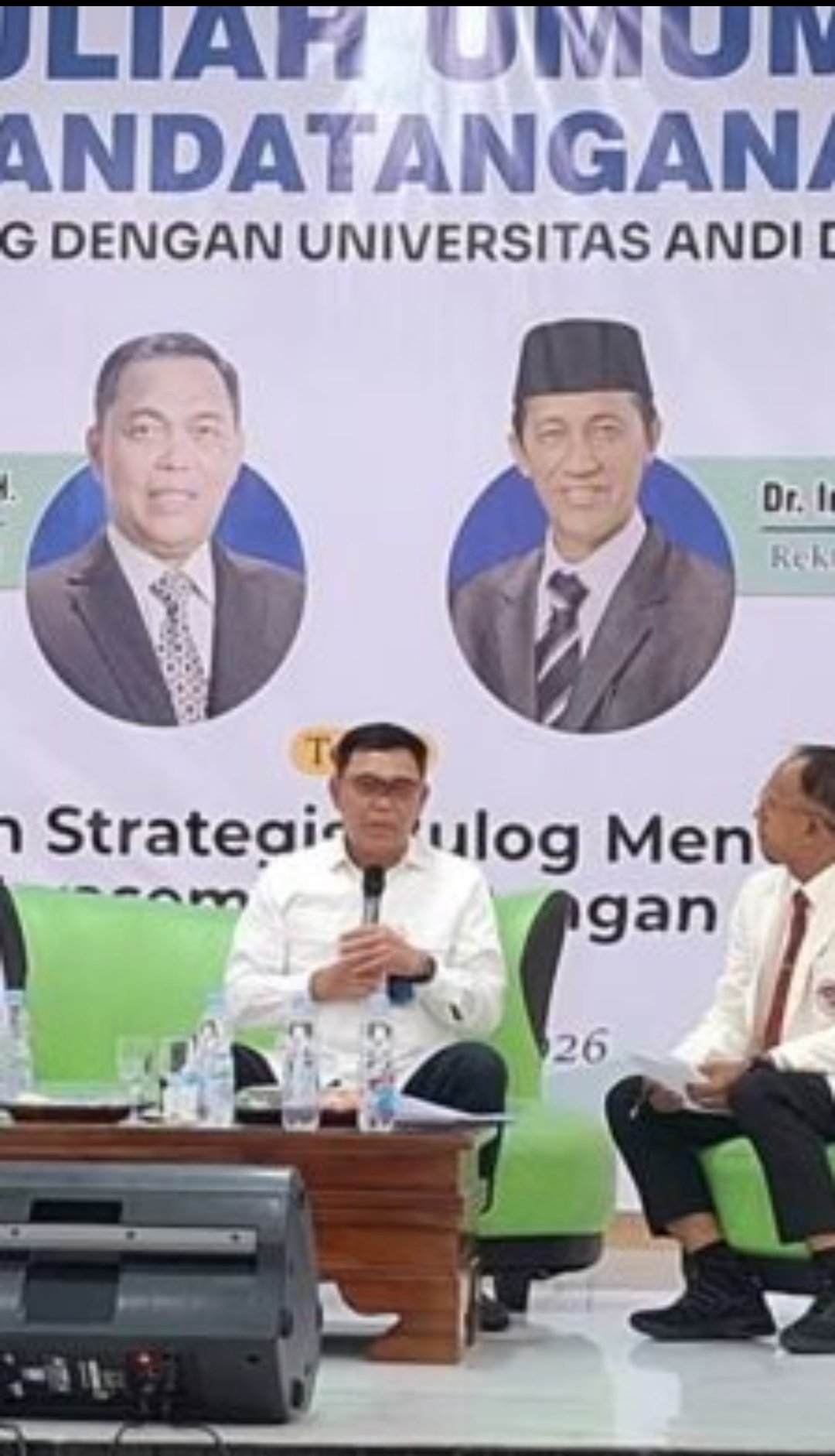KATARAKJAT.COM,PALOPO–Bekerjasama Perum Bulog, Universitas Andi Djemma Palopo menggelar Kuliah umum mengangkat tema “Peran Strategis Bulog Menuju Swasembada Pangan” yang dirangkaikan dengan penandatanganan Nota Kesepahaman (MoU) antara Unanda Palopo dan Perum Bulog RI.