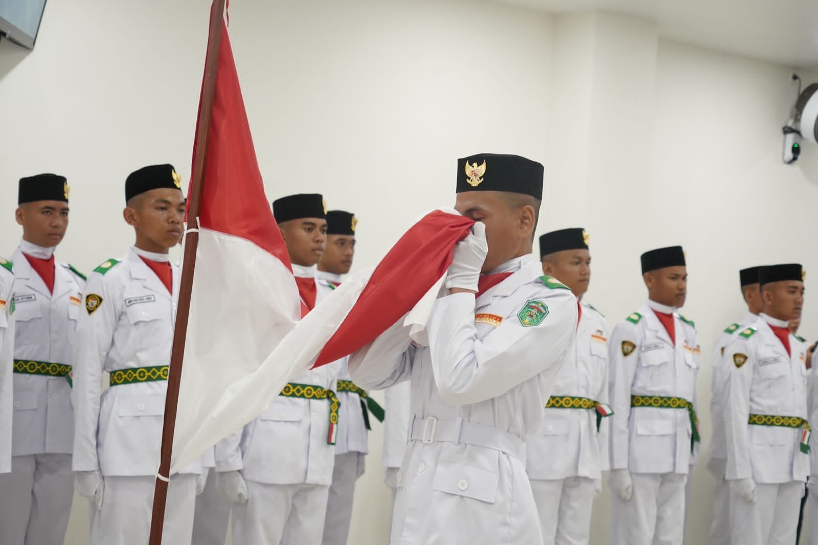 Sebanyak 70 Pasukan Pengibar Bendera Pusaka (Paskibraka) Merah Putih Kabupaten Luwu Timur Tahun 2025 dikukuhkan di Aula Awana Wisma Trans, Jumat 15 Agustus 2025.
