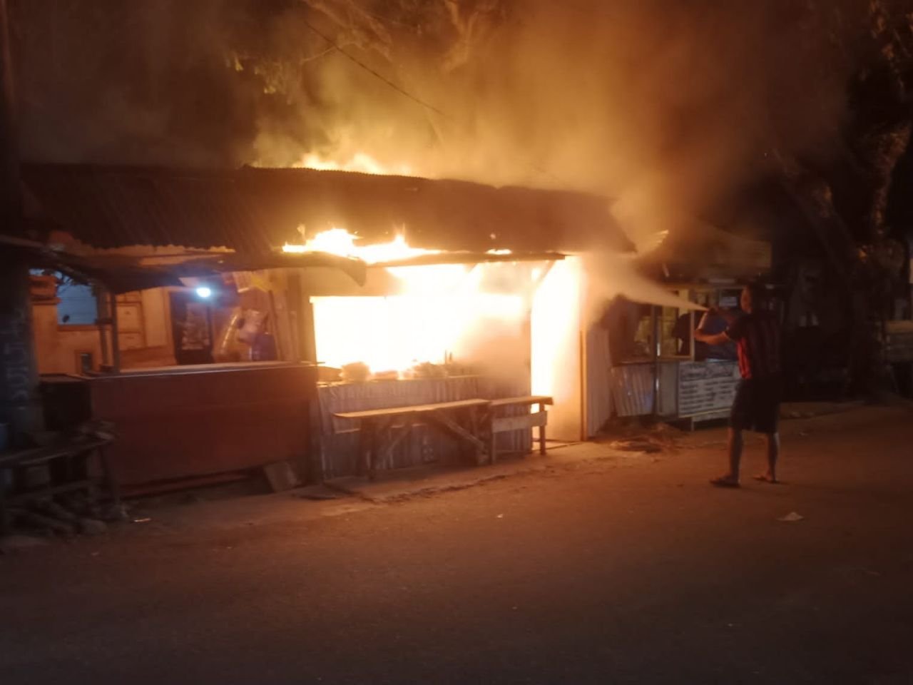 KATARAKJAT.COM, PALOPO — Warung depan di RSUD Sawerigading, Kelurahan Rampoang, Palopo dilalap api, Senin, 20 Oktober 2025 malam. Api membumbung di dalam warung yang berukuran kecil tersebut. Korban mengalami luka bakar.